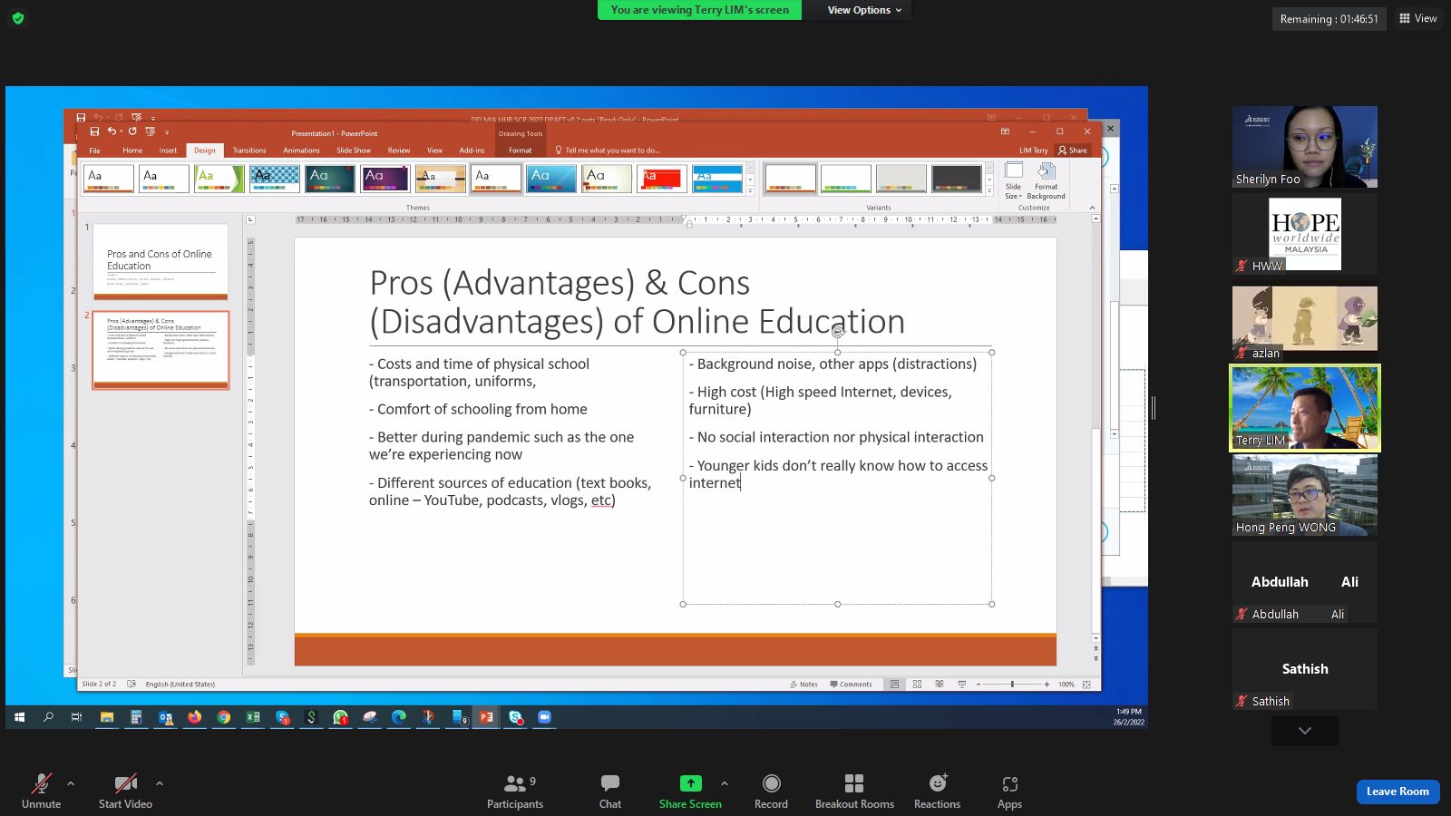 “It takes a big heart to shape little minds.” This is what HOPE worldwide Malaysia has been striving to do. We provide the platform, to engage volunteers from corporate companies to reach out to our youths through a series of Education Programs. Even during this pandemic era, thanks to technology, we still can make volunteerism possible! With this, we are so thankful for 3Ds (Dassault Systemes Innovation Technologies Malaysia Sdn. Bhd.) staff who conducted a 3-hour Online Presentation Workshop for our youths on 26 February 2022.