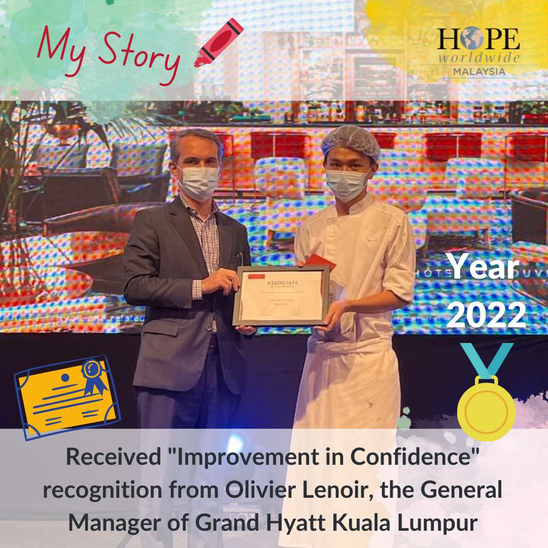 From a disadvantaged youth to being employed as a Commis Chef with Grand Hyatt Kuala Lumpur, Thiem Shan’s 3 years journey with Grand Hyatt has transformed his life completely. Recently, he was nominated by the board of directors and received recognition by the General Manager for his Improvement in Confidence.