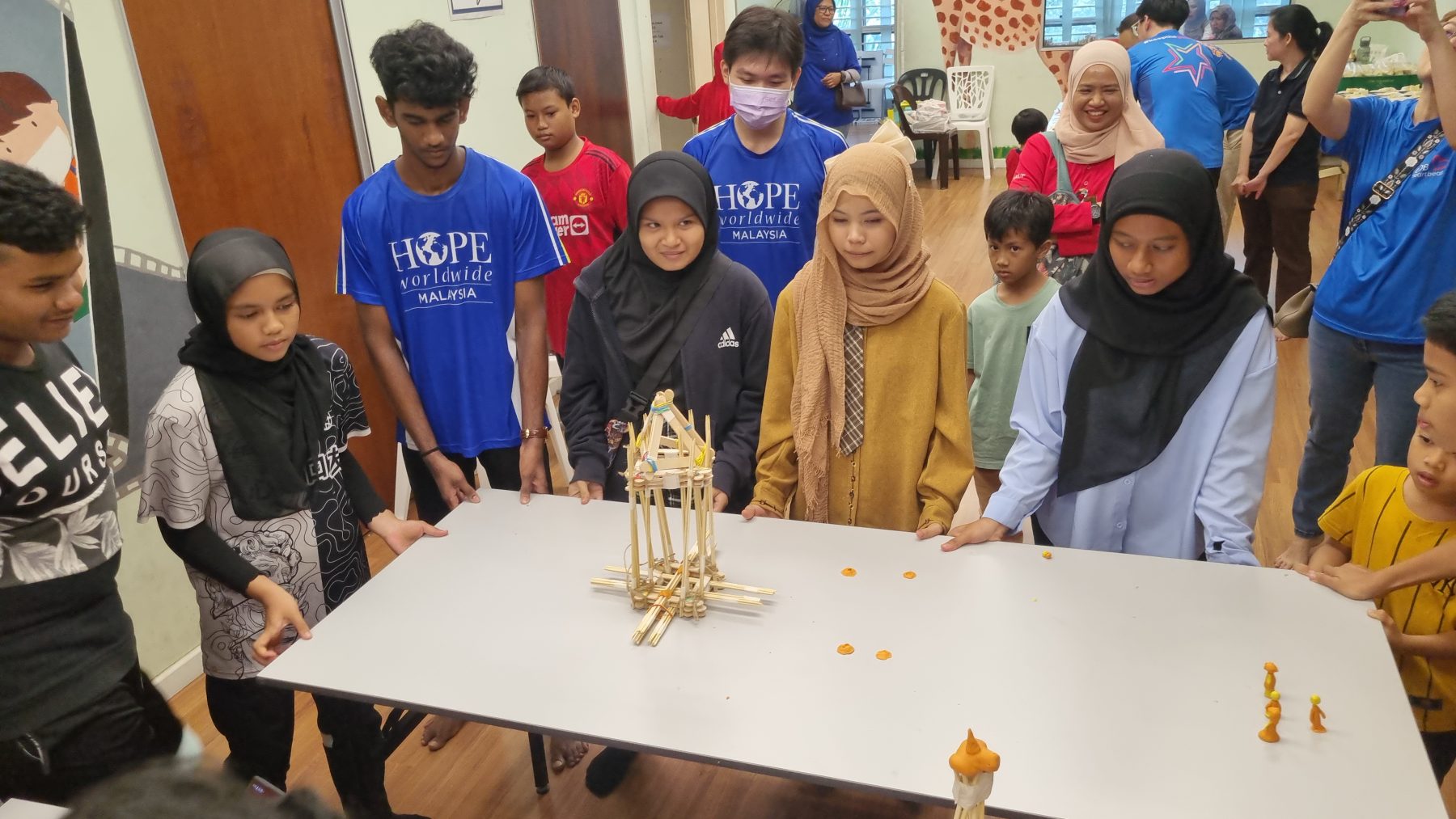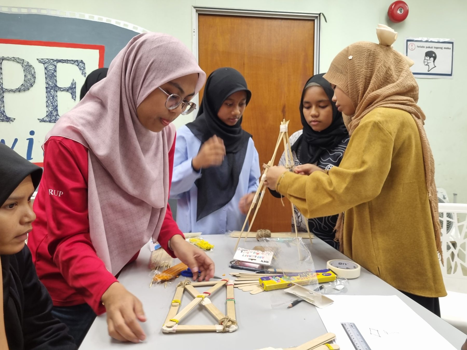 Participants were tasked with designing and constructing a model building using wooden sticks and strings, with the primary goal of creating a structure that could withstand simulated earthquake conditions. This hands-on activity encouraged creativity, critical thinking, and problem-solving as students collaborated in teams to develop their designs.